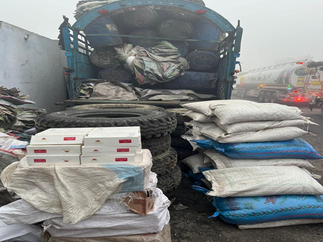 In addition, carrier vehicles used for transportation of the smuggled goods were also confiscated. These include one Mazda truck, two Bedford trucks, one pickup vehicle, and one Suzuki pickup, with a combined estimated value of PKR 17.5 million.
