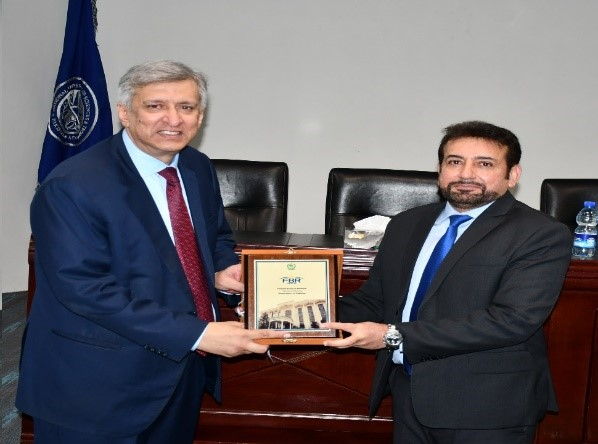 The FBR team included Mr. Muhammad Alam Zaib Khan (Secretary Tax Education), Mr. Muhammad Zahid Awan (Second Secretary), Mr. Salman Khaliq (Inspector, and Mr. Muhammad Zia Farooqi (Coordinator), Mr Manzoor Hussain and Mr. Tamoor from Public Relations Wing. Upon arrival at NUST Business School, the FBR team was welcomed by the Dr. Naukhez Sarwar (Dean), Mr. Saad Al-Marwat (Department Head), and other faculty members. The event was hosted by Ms. Mehreen, while Ms. Fizza Khan led the program, with Ms. Ramia Kiran serving as the coordinator from NUST Business School. Mr. Muhammad Alam Zaib Khan highlighted the importance of fostering a tax culture among the participants and emphasized that by paying taxes, we can actively contribute to the nation's development and growth. The session also included a Q&A segment, where participants asked various tax-related questions, which were answered satisfactorily. Prizes were distributed among the students during the event.